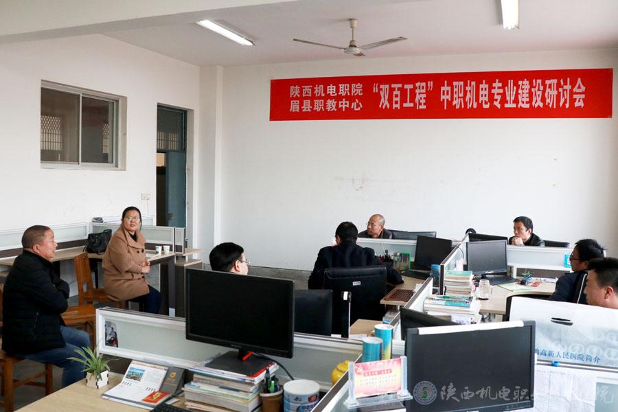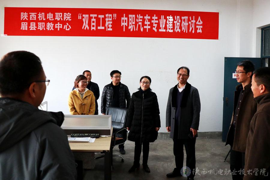 为全面落实“双百工程”教育帮扶工作,助推眉县脱贫攻坚,11月27日,陕西机电职业技术学院党委书记伊逊智,党委宣传部长、工会副主席李明,信息工程系主任杜海军等一行8人赴眉县职教中心开展“双百工程”教育帮扶,专业建设研讨活动。
