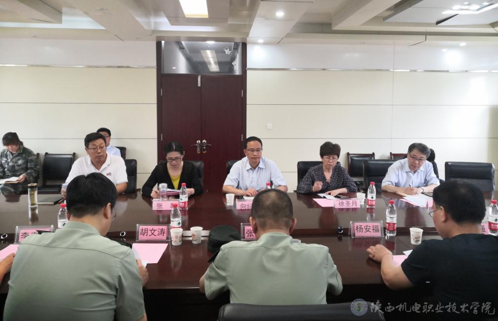 市委常委、宝鸡军分区司令员张炜一行于6月16日来我校调研指导大学生征兵工作,党委副书记、院长向纪明,副院长徐圣月,副院长张琴,保卫处副处长常小凯等热情接待,会议由保卫处处长、人武部部长王建斌主持。