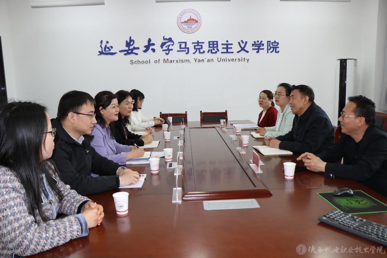 4月19日,陕西机电职业技术学院党委副书记、纪委书记陈红梅,马克思主义学院负责人王康、德法教研室主任陈欢、概论教研室主任齐晓红一行赴延安大学和延安职业技术学院学习交流。
