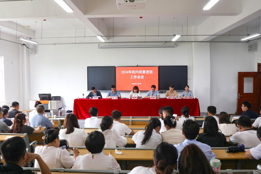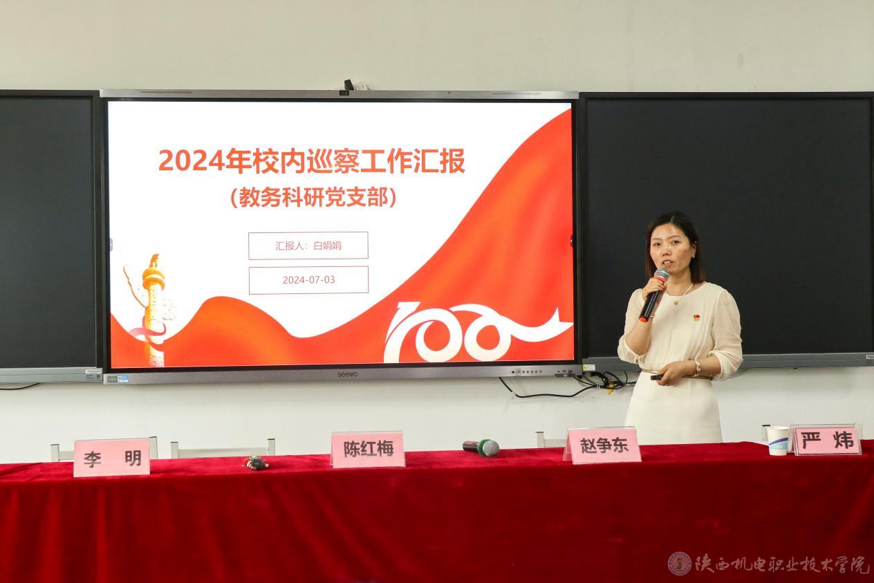 7月3日下午,陕西机电职业技术学院党委巡察组在蟠龙校区行知楼北203室召开巡察进驻会,巡察组成员、巡察办公室人员、被巡察党支部所辖部门全体教职工参加。会议由巡察组副组长、党委委员、院长助理、党委组织部部长赵争东主持。