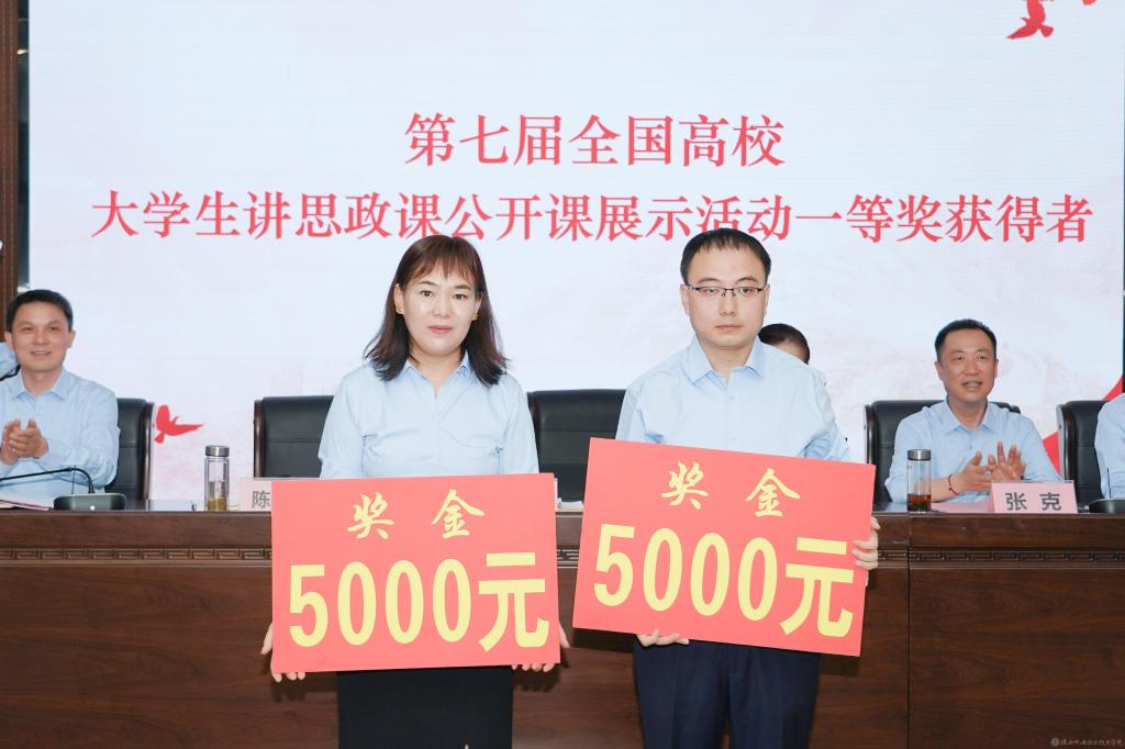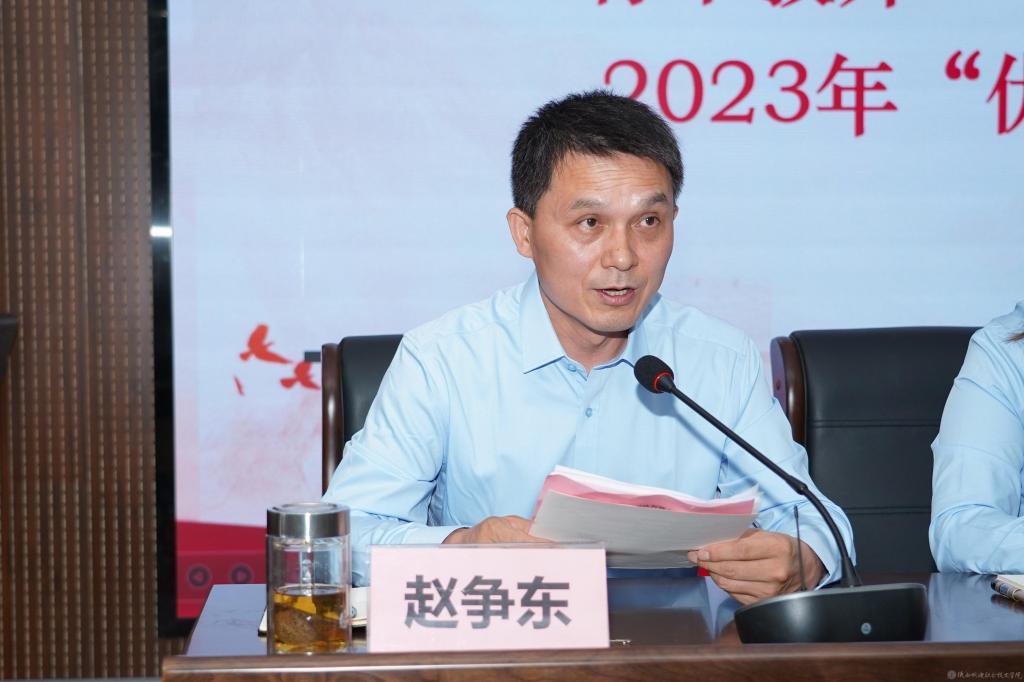 赵争东同志宣读《关于评聘2024年“专业(学科)带头人”“骨干教师”“优秀聘任教师”及评选2023年“优秀青年教师”结果的通知》并颁奖;宣读第七届全国高校大学生讲思政课公开课展示活动一等奖获奖名单、2024年中国国际大学生创新大赛金奖、银奖获奖名单并颁奖。