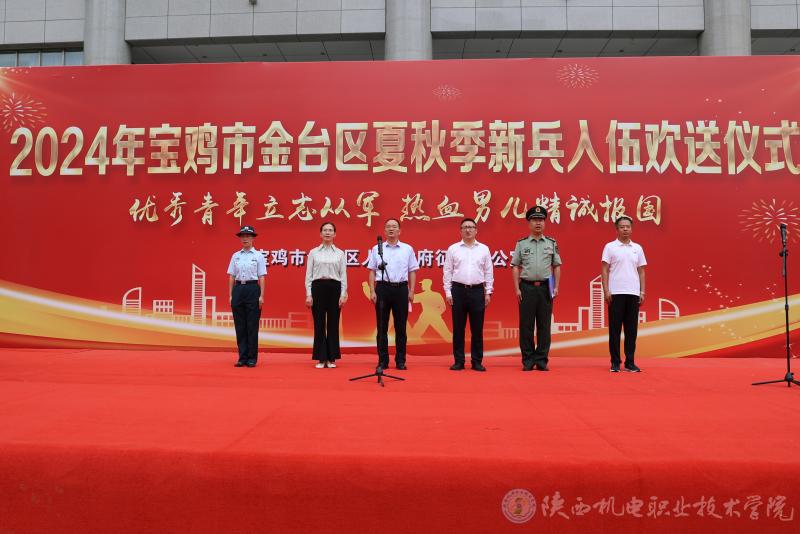 9月18日下午,2024年宝鸡市金台区秋季新兵入伍欢送仪式在宝鸡市金台区市民中心广场举行。陕西机电职业技术学院党委副书记张琴代表学校参加欢送仪式,活动由金台区人武部政委宋景富主持。