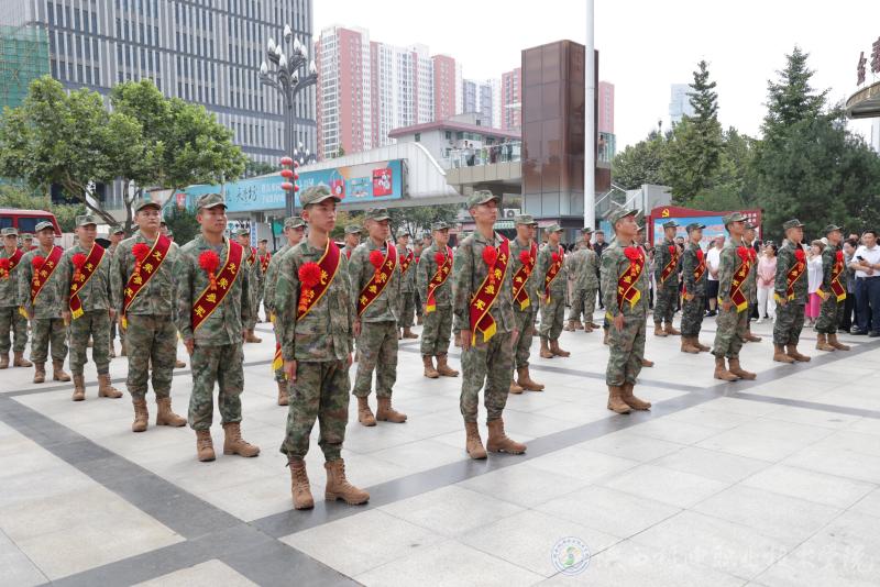 陕西机电职业技术学院党委副书记张琴代表学校欢送2024年秋季入伍大学生