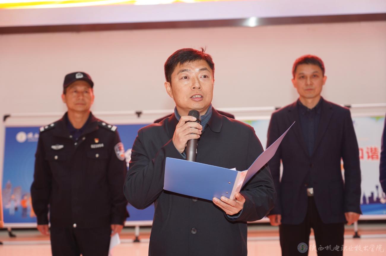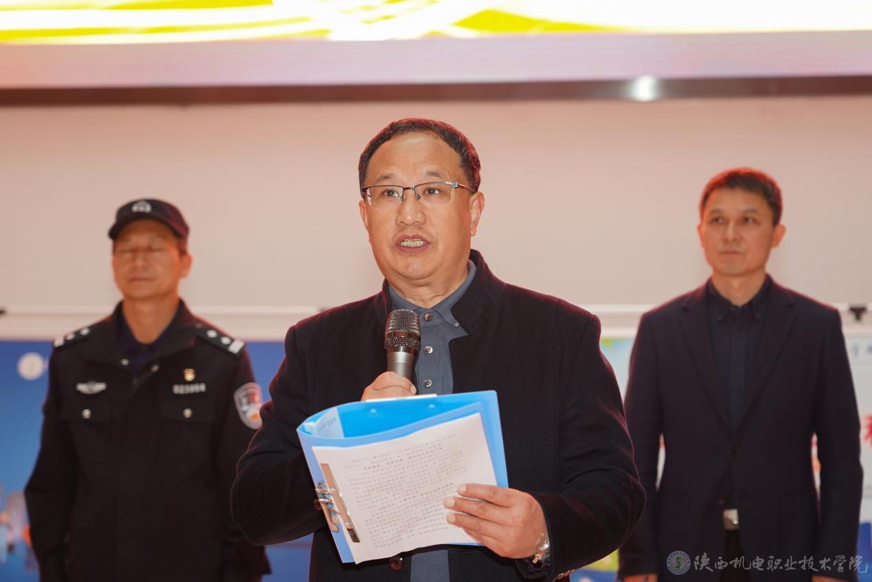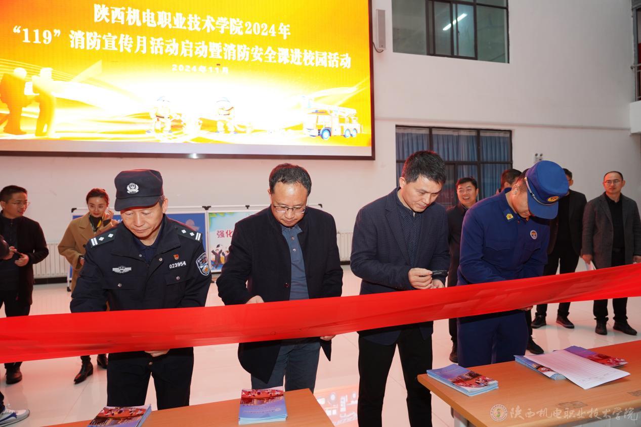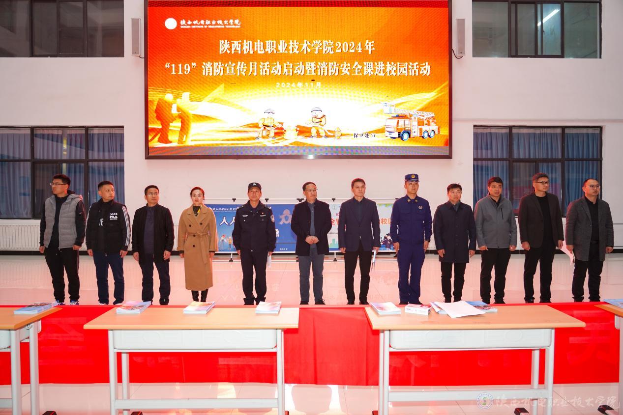 11月13日,陕西机电职业技术学院“119”消防宣传月暨消防安全课进校园活动启动仪式在校园内盛大开启。学校党委副书记、院长向纪明,党委委员、院长助理赵争东,金台消防救援大队教员吕锦涛,蟠龙派出所所长庞建军,校团委书记、学生处副处长王枢,各二级学院书记,部分师生代表及消防部门相关人员等参加了此次活动。启动仪式由保卫处副处长常小凯主持。