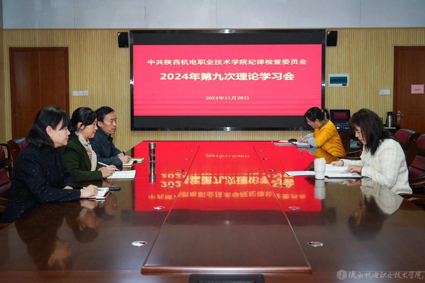 11月28日上午,陕西机电职业技术学院纪委在蟠龙校区图书楼二楼会议室召开2024年度第九次理论学习扩大会。纪委委员、纪律检查室工作人员参加。党委副书记、纪委书记陈红梅主持会议。