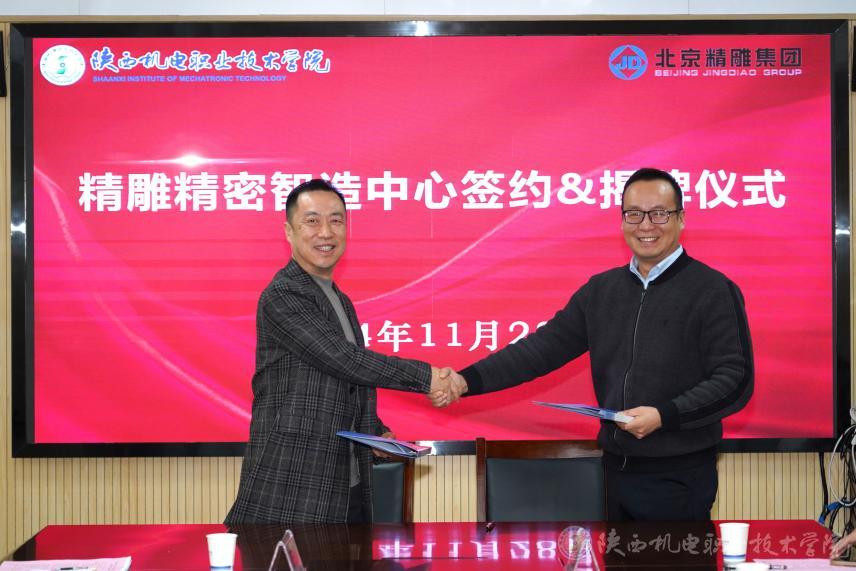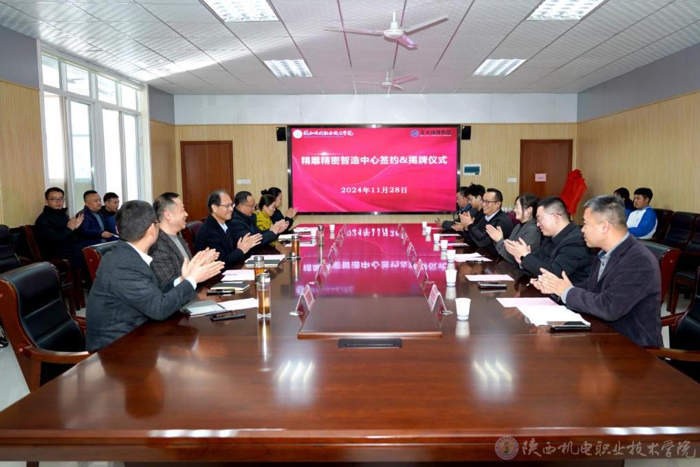 11月28日,陕机电精雕精密智造中心签约揭牌仪式在图书馆二楼会议室举行,北京精雕科技集团有限公司(以下简称“北京精雕公司”)行政总监李文华、北京精雕公司教育总监关山,陕西机电职业技术学院党委书记伊逊智,党委副书记、院长向纪明等参加揭牌仪式。仪式由党委委员、副院长张克主持。