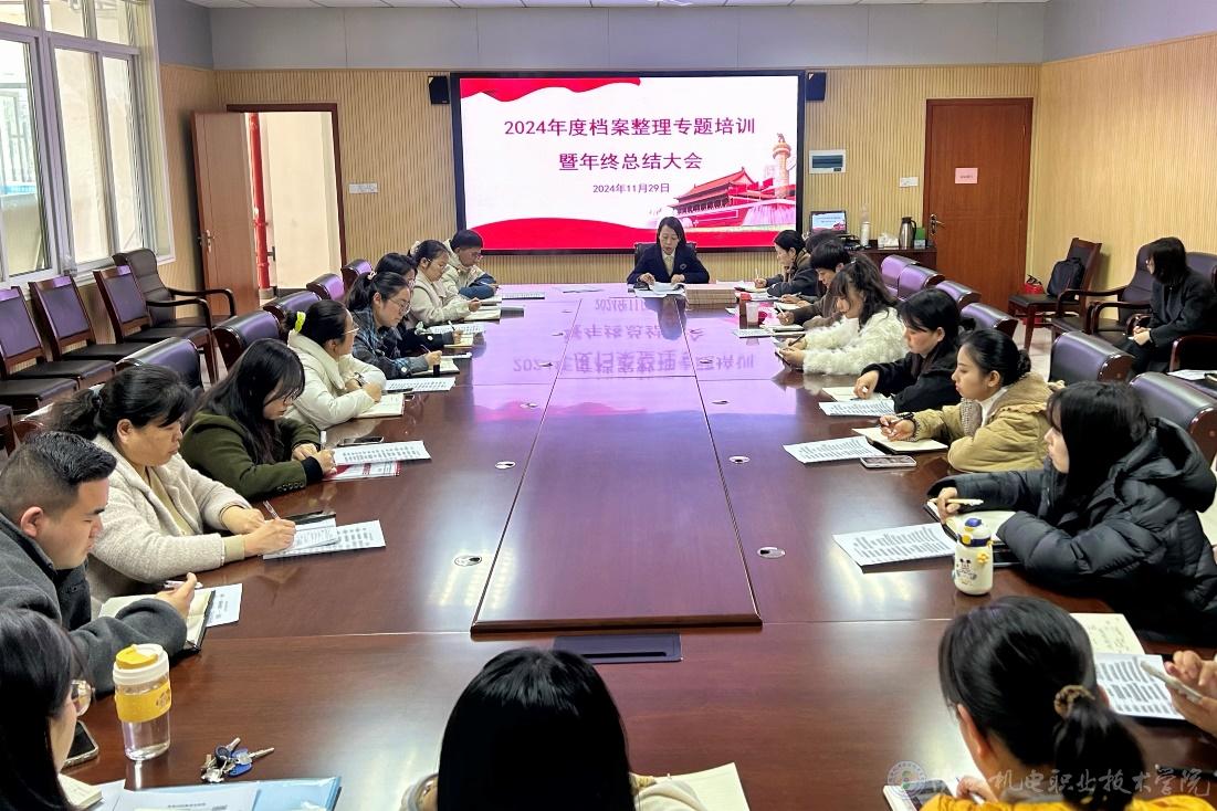 为进一步提高学校档案管理工作的规范化水平,加强档案工作人员的业务能力,陕西机电职业技术学院于11月29日组织召开2024年度档案整理专题培训暨年终总结大会。学校各部门兼职档案员及档案室工作人员参加会议。
