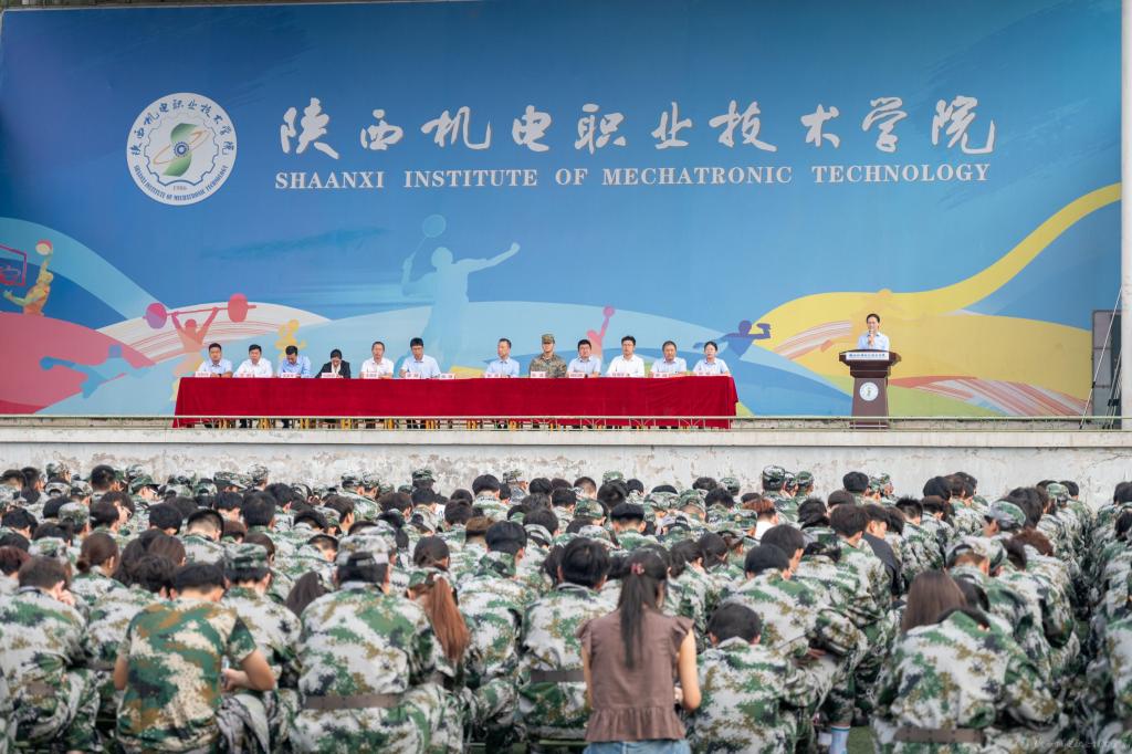 陕西机电职业技术学院2025级新生开学典礼暨军训动员大会于9月14日分别在蟠龙、宝福路、千河校区隆重举行。学校党委书记伊逊智,党委副书记张琴,党委委员、党委宣传部部长李明,承训部队干部出席,大会由党委委员、副院长张克和党委委员、院长助理赵争东分别主持。