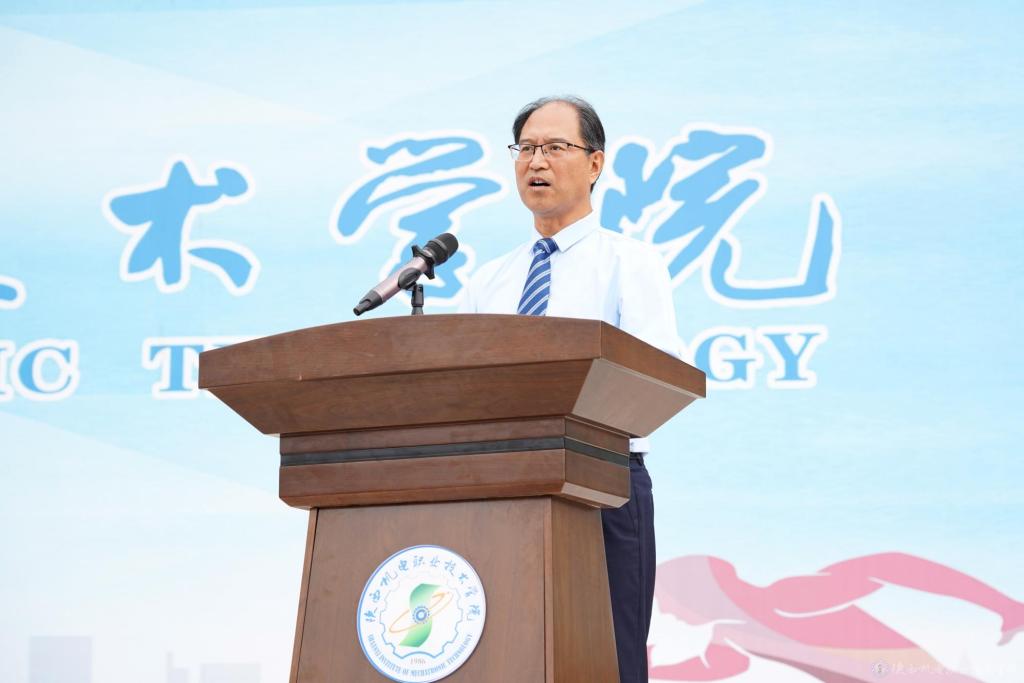 校领导在讲话中首先向承训部队干部、教官致以崇高敬意,对来自五湖四海的新生表示欢迎,随后分别从靠“硬实力”筑根基、炼“铁意志”能扛事、以“三颗心”敢担当和走“三条路”成栋梁等四个方面向同学们指明了前进的方向,并赠送了同学们三句话:技能是铁饭碗,本事是硬道理;青春不躺平,奋斗才出彩;强国不靠喊,关键看行动。希望同学们带着嘱托,全力投入学习与军训,努力成为德智体美劳全面发展的新时代大学生!